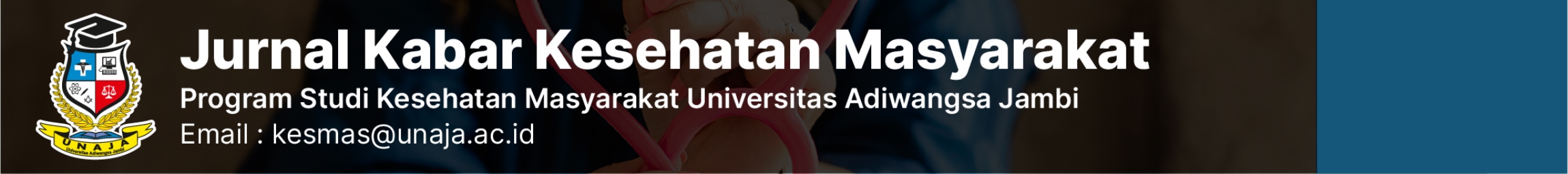 Jurnal Kabar Kesehatan Masyarakat diterbitkan oleh Prodi Kesehatan Masyarakat Fakultas Kedokteran dan Ilmu Kesehatan Universitas Adiwangsa Jambi yang diterbitkan dua kali dalam setahun, yaitu pada bulan Juli dan Januari.