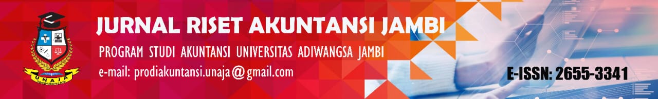 Jurnal Riset Akuntansi Jambi is a journal managed by the Accounting Program of the Adiwangsa Jambi University (UNAJA). The journal acts as a means for lecturers/researchers to publish their results of research. This journal is published twice a year in June and October and was first published in June 2018.